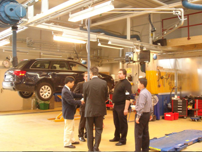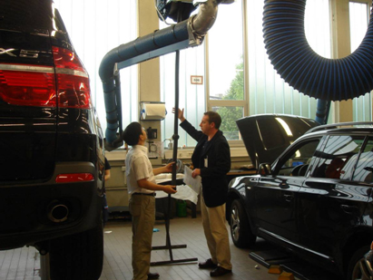 在瑞典的FORD維修中心,總部的工程師在詳細介紹Nederman產品的應用。